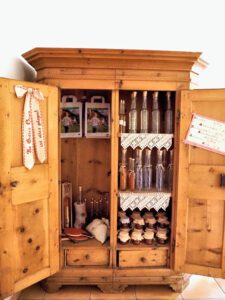 Je nach Saison ist auch unser „Schmankerl Schrank“ im Haus gut gefüllt mit edlen Bränden, sowie hausgemachten Marmeladen.